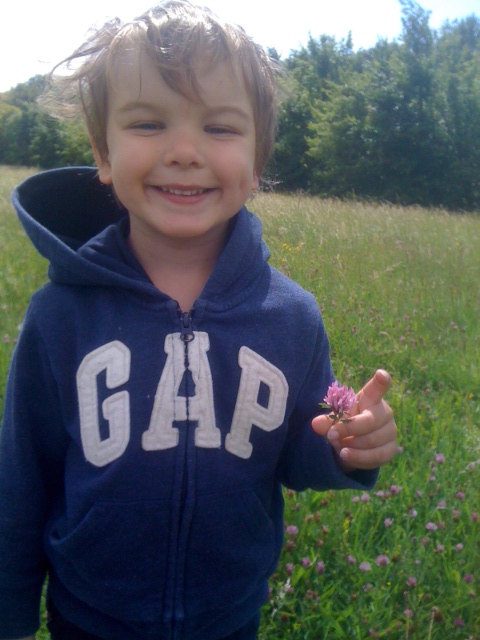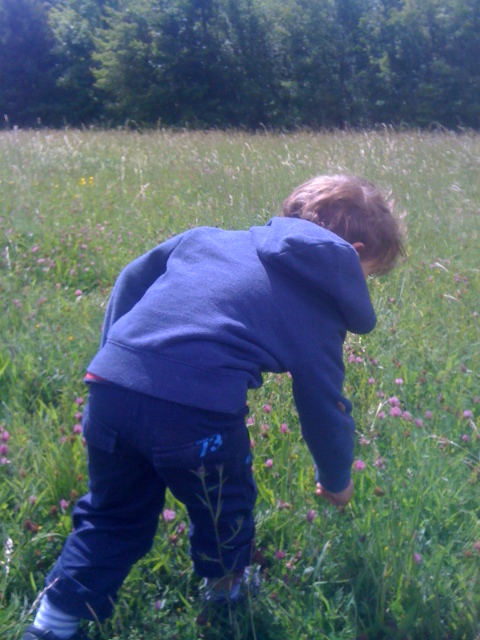 I honestly have never seen red clover grow in such abundance, there was literally a red carpet as far as we could see. Totally unprepared for such a harvest we used the hood of Theo’s raincoat to hold our bounty.
